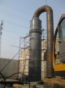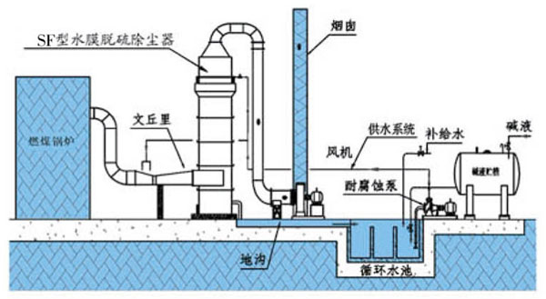 六、安裝 1、在適當(dāng)位置進(jìn)行地面處理做好基礎(chǔ)?;A(chǔ)尺寸以圖紙為準(zhǔn)?;A(chǔ)平整面上放上普通1:1的濃砂漿料,高2cm,必須在邊上10cm的圓周內(nèi),中間不能放砂漿料。如果放了將影響除塵器的受力,造成壓裂、漏水現(xiàn)象。第一節(jié)四周平整后,用鋼板壓上5-6個點,鋼板必須結(jié)實,以免造成以后設(shè)備的動搖,影響設(shè)備垂直度。 2、安裝第二節(jié)時,先在第一節(jié)上部鋪上耐酸膠泥2cm左右,膠泥不能斷裂,用進(jìn)口對準(zhǔn)鍋爐出口方向。除塵器進(jìn)口處有文丘里霧化裝置,安裝時需考慮文丘里長度等尺寸。第二節(jié)壓在第一節(jié)上部,安裝時需輕輕壓下,保證內(nèi)壁垂直,外面的接縫必須勻稱。第三節(jié),第四節(jié)等安裝類似。 3、設(shè)備安裝完畢后,把環(huán)形水管安放在水槽上方的掛鉤上。插上軟管,軟管插入水槽口3cm。然后用耐酸膠泥封死,保證不漏風(fēng),再用普通水泥把水槽上面的接縫和抹平的下水口重新抹上一遍,厚度2cm,確保不漏風(fēng)漏水。環(huán)形水管由2半圓環(huán)形管組成,安裝時需用膠水粘合成整圓。環(huán)形水管有2路進(jìn)水管口,2路水管需在除塵器底部匯合成1路與水泵出口的循環(huán)水管相接。循環(huán)水管需用316L不銹鋼制作,外面做好保溫。循環(huán)水管需分1路316L水管到文丘里噴淋裝置處,分水口可開在任何一根管路上,此管路也需保溫。 4、文丘里接頭處用軟皮密封,螺栓必須擰緊,保證不漏風(fēng)漏水。鍋爐出口風(fēng)管必須高于文丘里高度,以防停機時文丘里內(nèi)液體倒流。 5、安裝全部結(jié)束后,外面的縫隙必須用普通水泥抹平。不可用耐酸膠泥,因為耐酸膠泥含氟硅酸鈉成分,遇雨水后有白色的水流痕跡,影響外觀。 6、如果設(shè)備是正壓安裝,則接縫處需把砂漿清洗干凈,然后將節(jié)與節(jié)之間的縫隙用電焊焊死,必須是滿焊。然后再用普通水泥抹平。以免正壓造成設(shè)備漏風(fēng)漏水,影響效果。 7、正壓安裝,如果是直排煙囪,則直排煙囪需用鋼絲繩拉緊,保證直排煙囪的穩(wěn)固。 五、運行維護(hù) 1、運行前應(yīng)檢查脫硫除塵器質(zhì)量是否符合要求,保證供水系統(tǒng)暢通,排灰口封嚴(yán)密不漏; 2、運行前,應(yīng)先開引風(fēng)機,再向供水系統(tǒng)供水,停爐時,應(yīng)在關(guān)閉引風(fēng)機前停止向系統(tǒng)供水。運行中,筒體絕對不允許斷水; 3、要求脫硫效率在80%以上的,必須定時定量在循環(huán)池中加入堿液,使循環(huán)水中的PH值保持在12以上,使沉淀池中的酸性廢水和加入的堿水中和沉淀過濾后可循環(huán)使用; 4、如除塵器長時間停止運行或運行時上部水槽出現(xiàn)泛水現(xiàn)象,則應(yīng)向水槽提供清潔水源沖刷一小時左右。 ![]() 安裝說明: 1、 最下面一節(jié)筒體的底部必須要鋪墊水泥砂漿,并在安裝時要找水平,此項工作結(jié)束后,再進(jìn)行下步工作。 2、 第二節(jié)進(jìn)口位置必須與鍋爐風(fēng)管出口一致。 3、 水槽、頂出口、環(huán)形水管均已在出廠前安裝好,現(xiàn)場只需進(jìn)行節(jié)與節(jié)之間的連接。 4、 最上端一節(jié)安裝前所有下部筒體內(nèi)外必須均抹平實膠泥。 5、 在檢修時必須關(guān)閉水泵和引風(fēng)機。 說明:本水膜除塵器為左進(jìn)風(fēng),也可為右進(jìn)風(fēng)。 |
